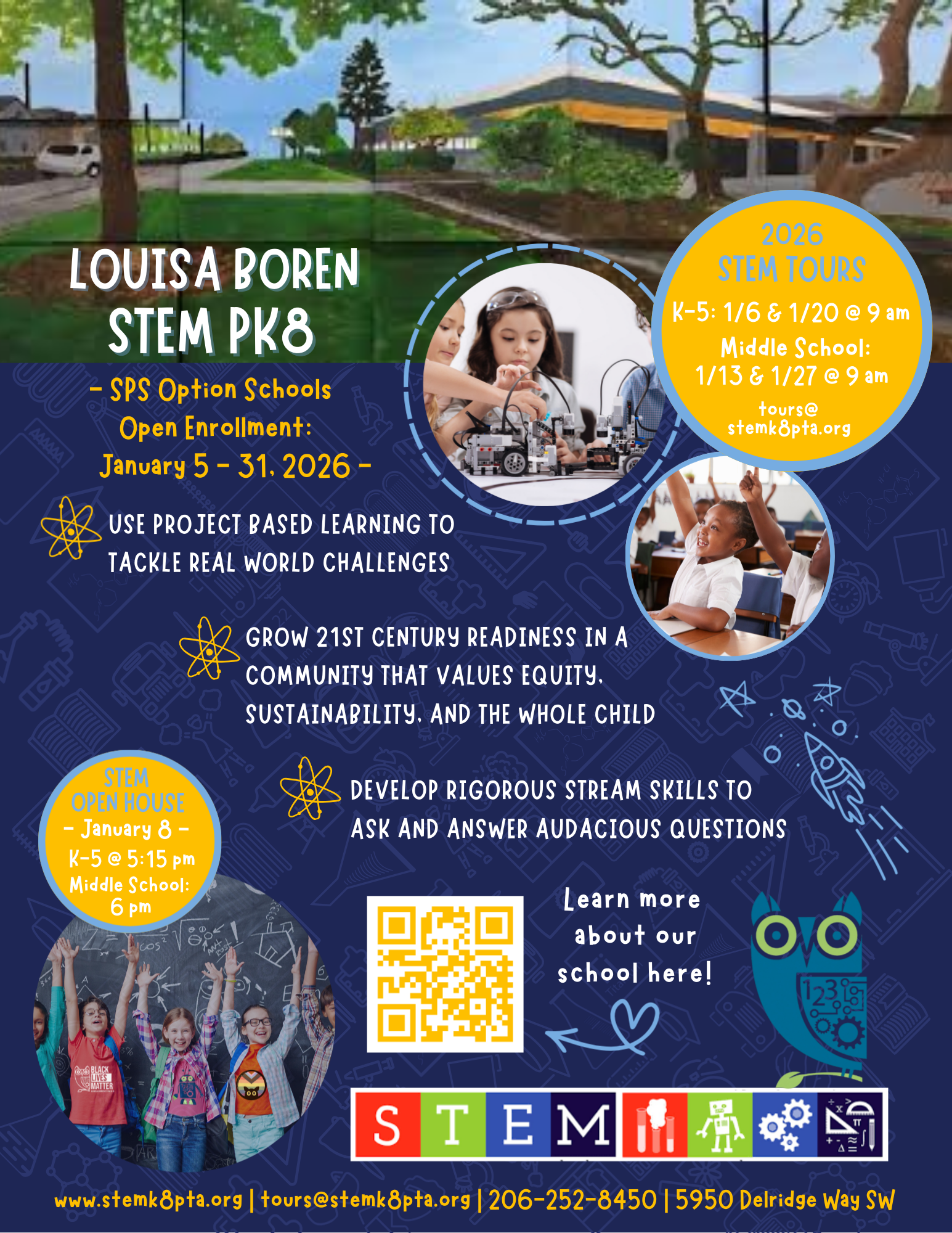 Still have questions? Please email: Tours@stemk8pta.org.